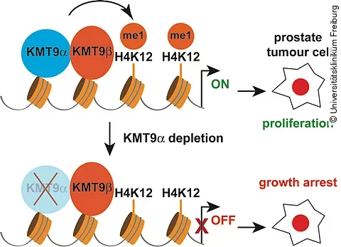 Forscher des Universitätsklinikums Freiburg und der Universität Freiburg beschreiben ein neues Enzym, das die Aktivität von Genen steuert. Das Wachstum therapieresistenter Prostatakrebs-Zellen wird durch das Abschalten des Enzyms gehemmt.